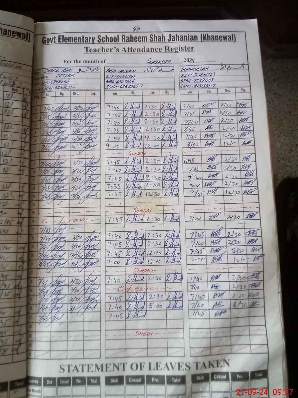 | Name: SH**** IQ**** Designation: (School Headmaster's/Headmistress's) SST(G) Phone/Cell Number: 03**** |