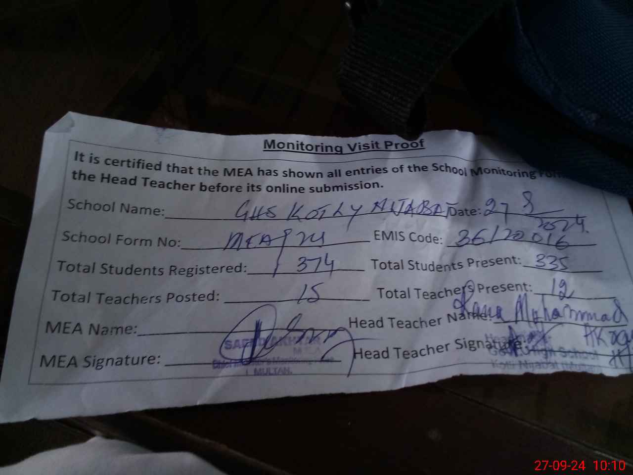 | EMIS Code: 36120016 | Name of School: GHS KOTLI NIJABAT | |||