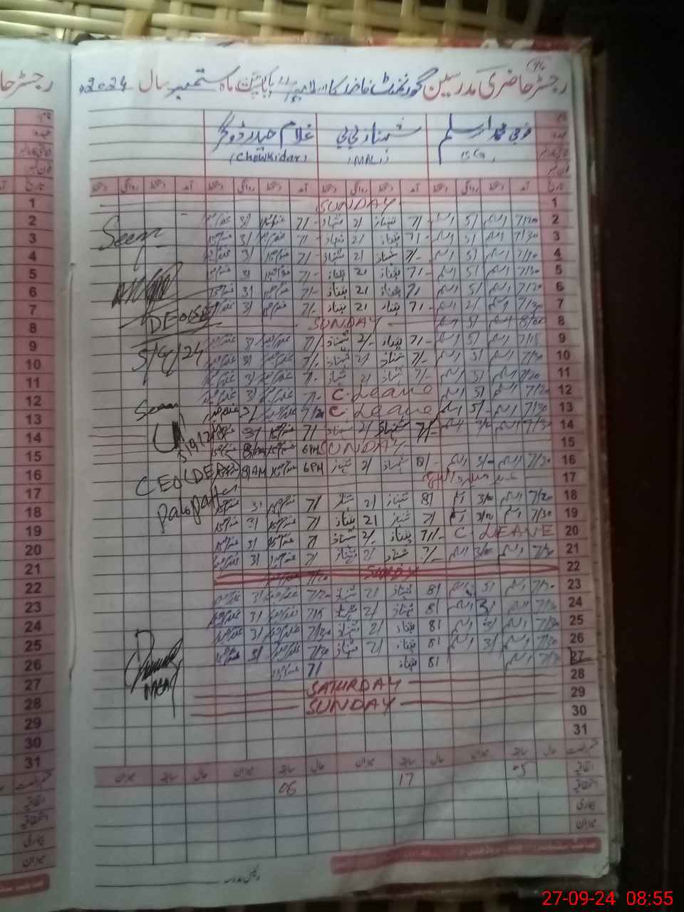 | CNIC | Full Name | Designation | R/C | Absence During Last Calender Month |