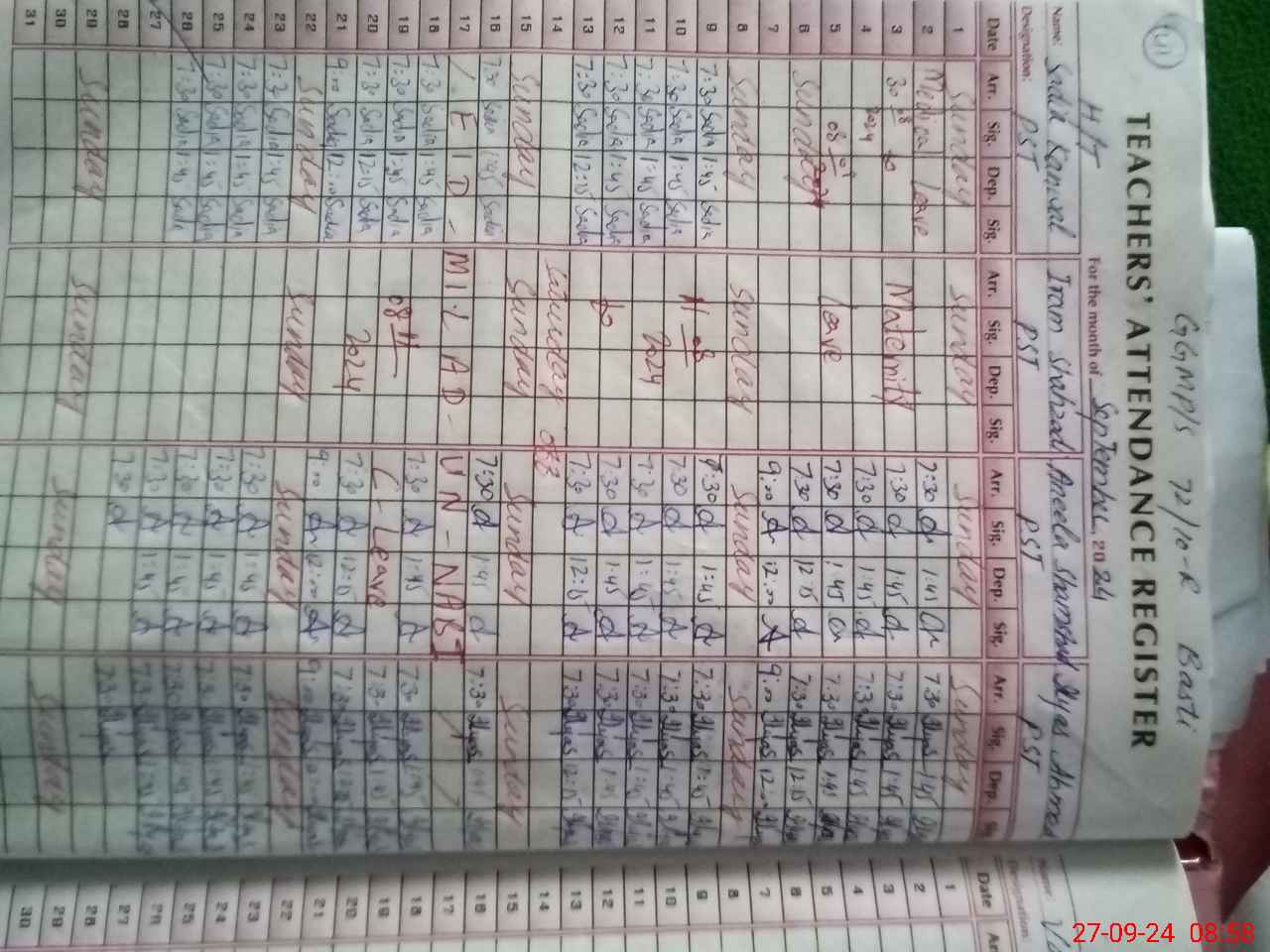 | Name: An**** Sh**** Designation: (School Headmaster's/Headmistress's) PST Phone/Cell Number: 03**** |