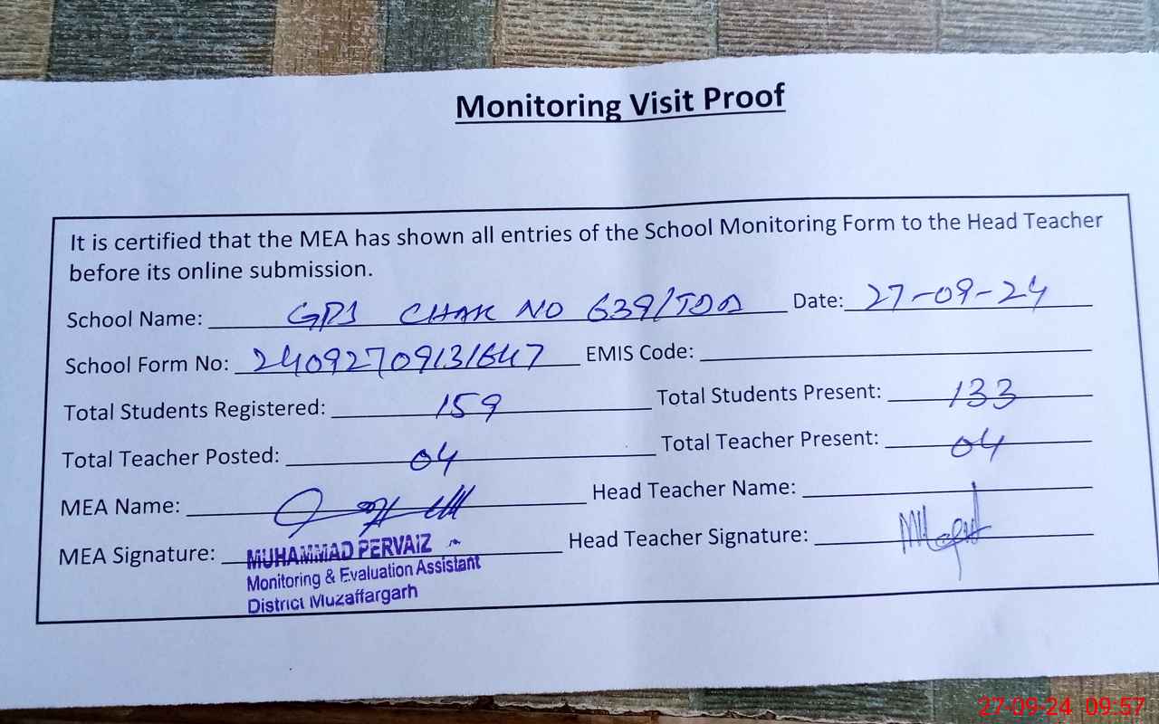 | EMIS Code: 32320323 | Name of School: GPS CHAK NO.639 TDA | |||