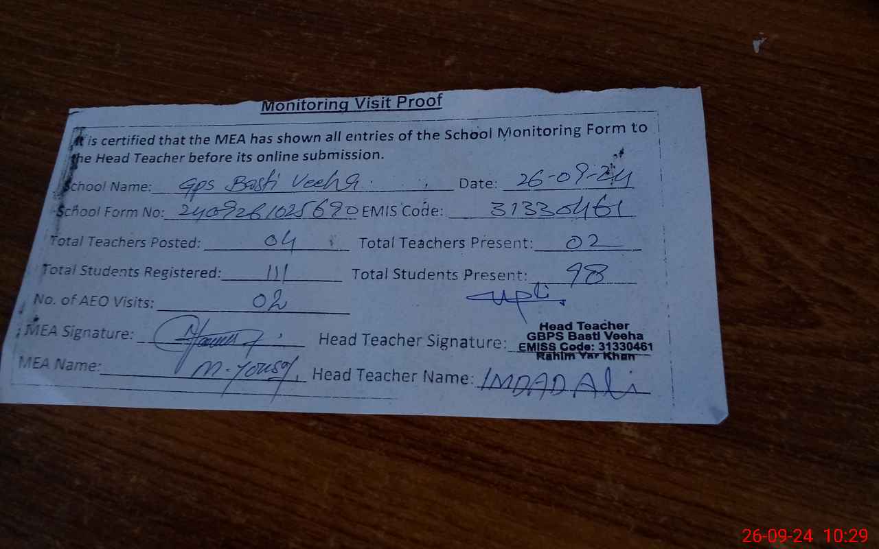 | EMIS Code: 31330461 | Name of School: GPS BASTI VEEHA | |||