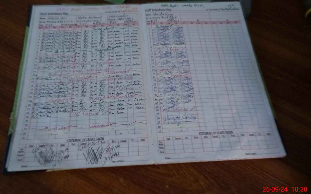 | CNIC | Full Name | Designation | R/C | Absence During Last Calender Month |