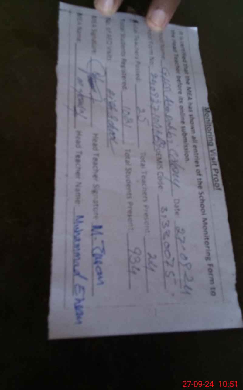 | Certified that this School was Inspected by the Undersigned MEA/DMO Today and the Information Stated Above is as Per Record. | |||||