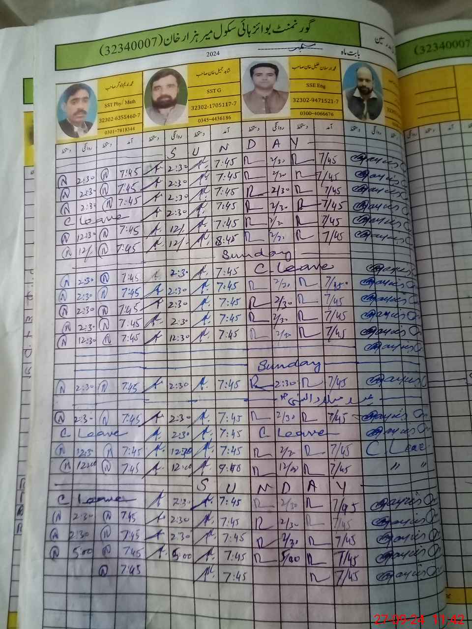 | CNIC | Full Name | Designation | R/C | Absence during last cal. month |