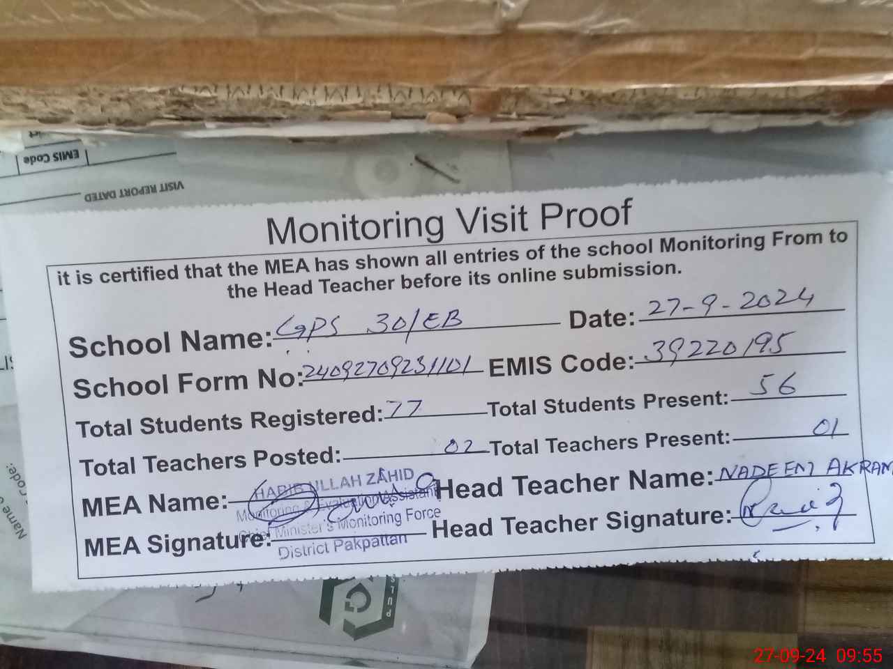 | EMIS Code: 39220195 | Name of School: GPS 30 EB | |||