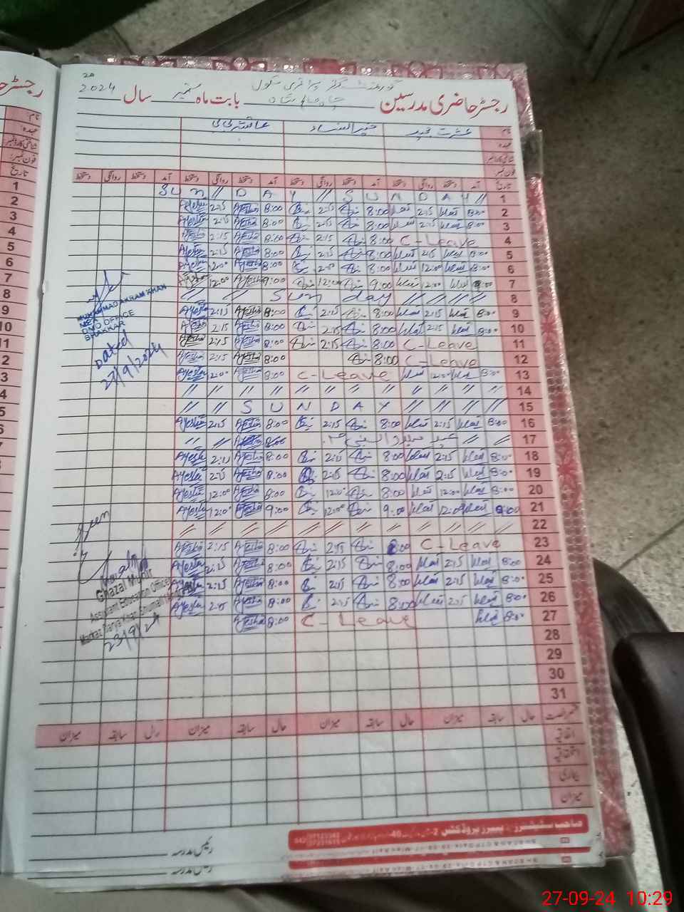 | CNIC | Full Name | Designation | R/C | Absence During Last Calender Month |