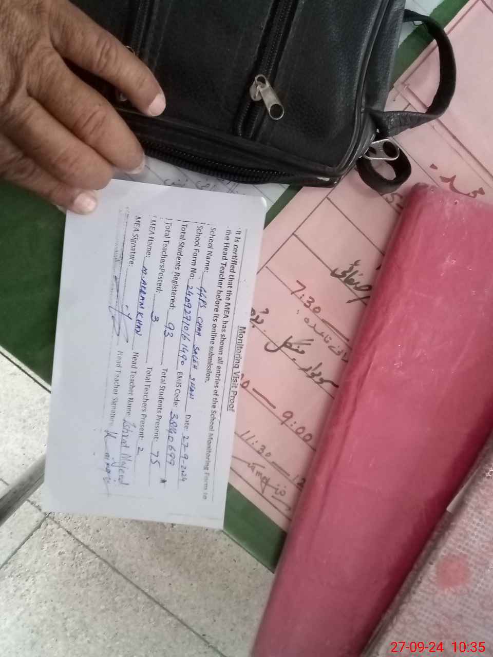 | Attendance Register | Head Teacher | MEA with School | Visit Proof |
