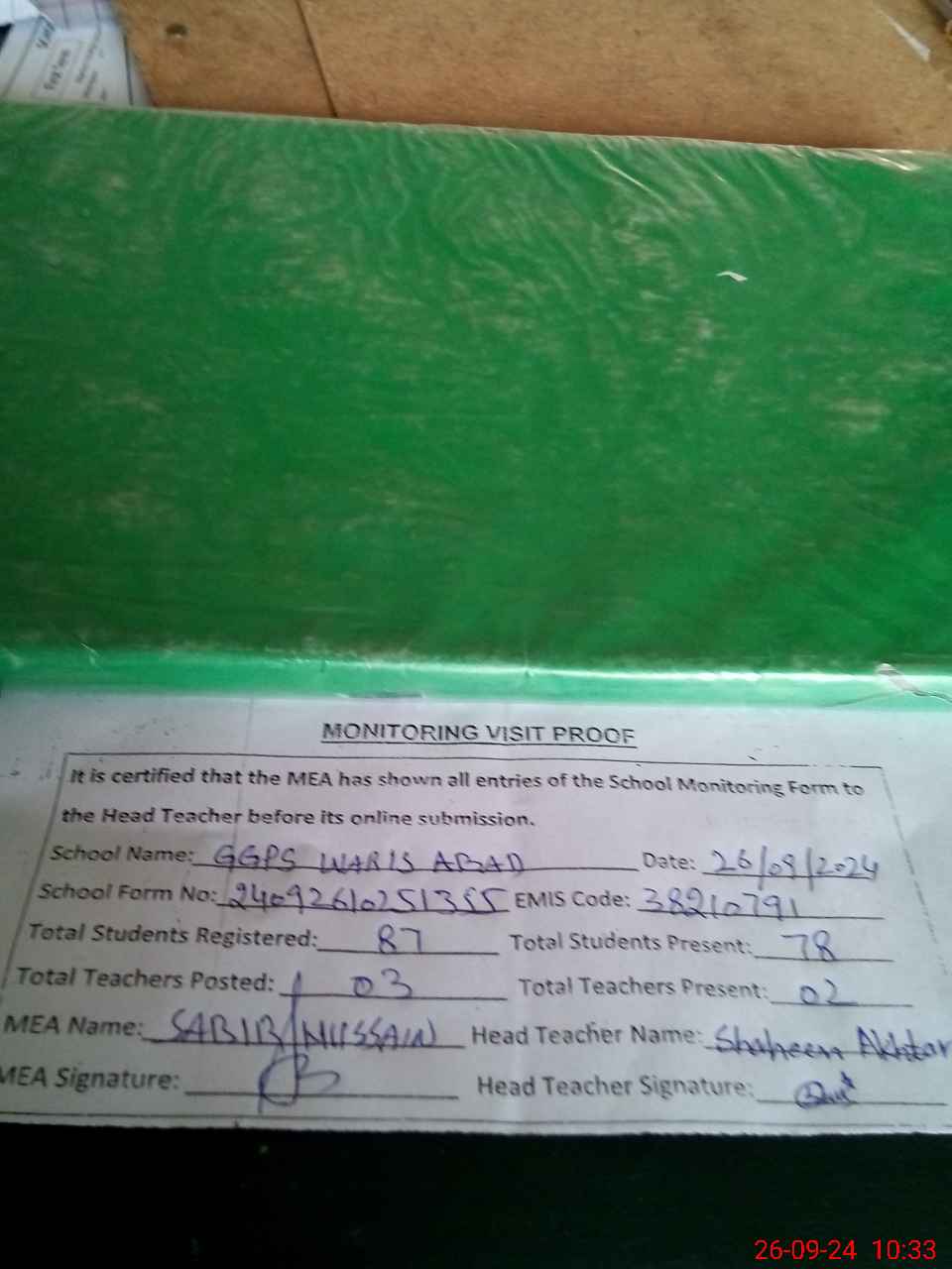 | EMIS Code: 38210791 | Name of School: GGPS WARIS ABAD | |||