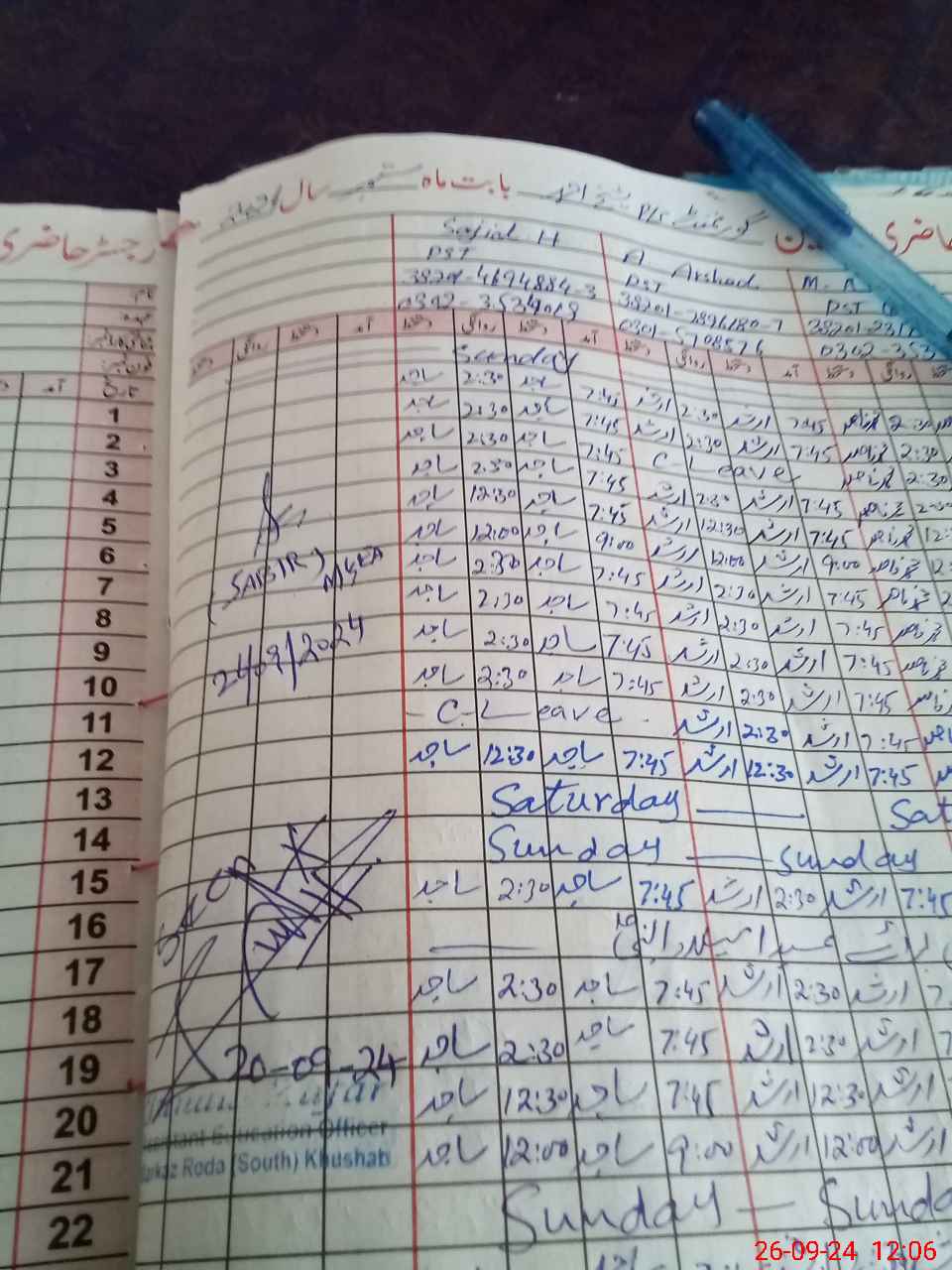 | CNIC | Full Name | Designation | R/C | Absence during last cal. month |