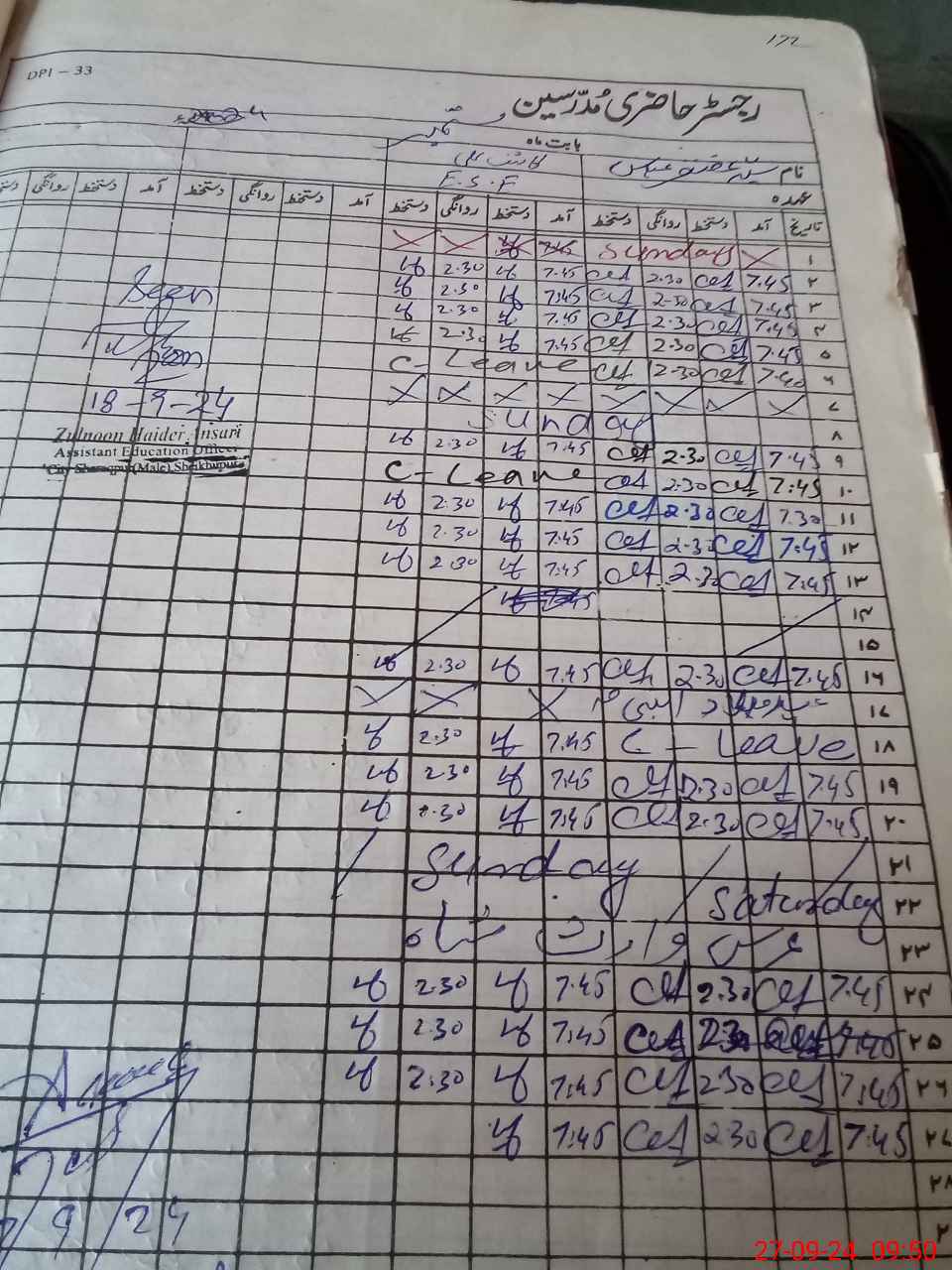 | CNIC | Full Name | Designation | R/C | Absence During Last Calender Month |