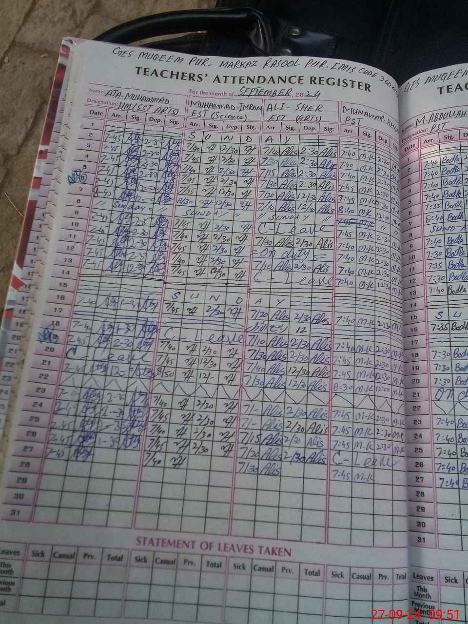 | Name: Mu**** Im**** Designation: (School Headmaster's/Headmistress's) EST Phone/Cell Number: 03**** |