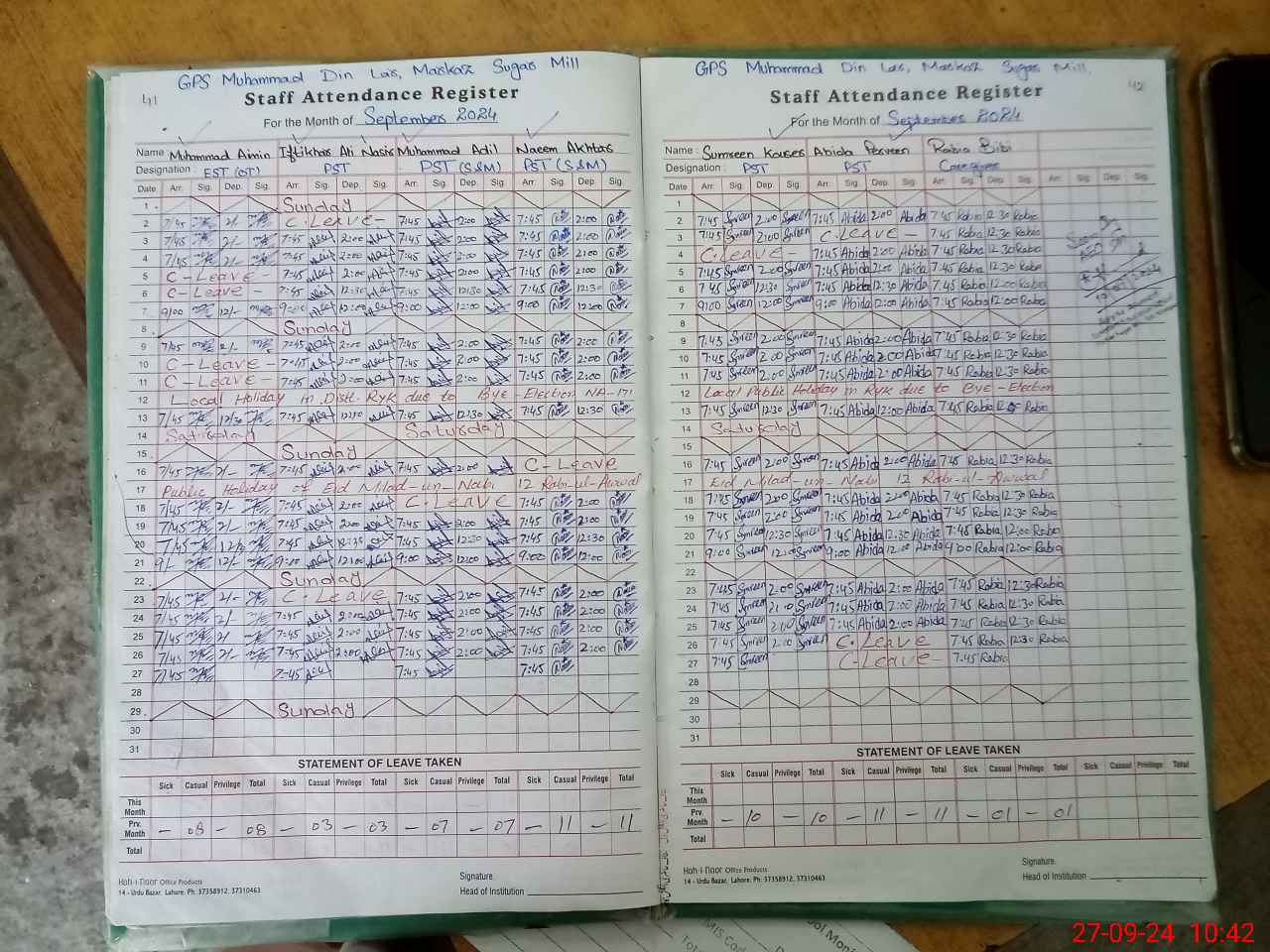 | Leave | Duty | Absent | Maternity | Medical | Ex- Pak |