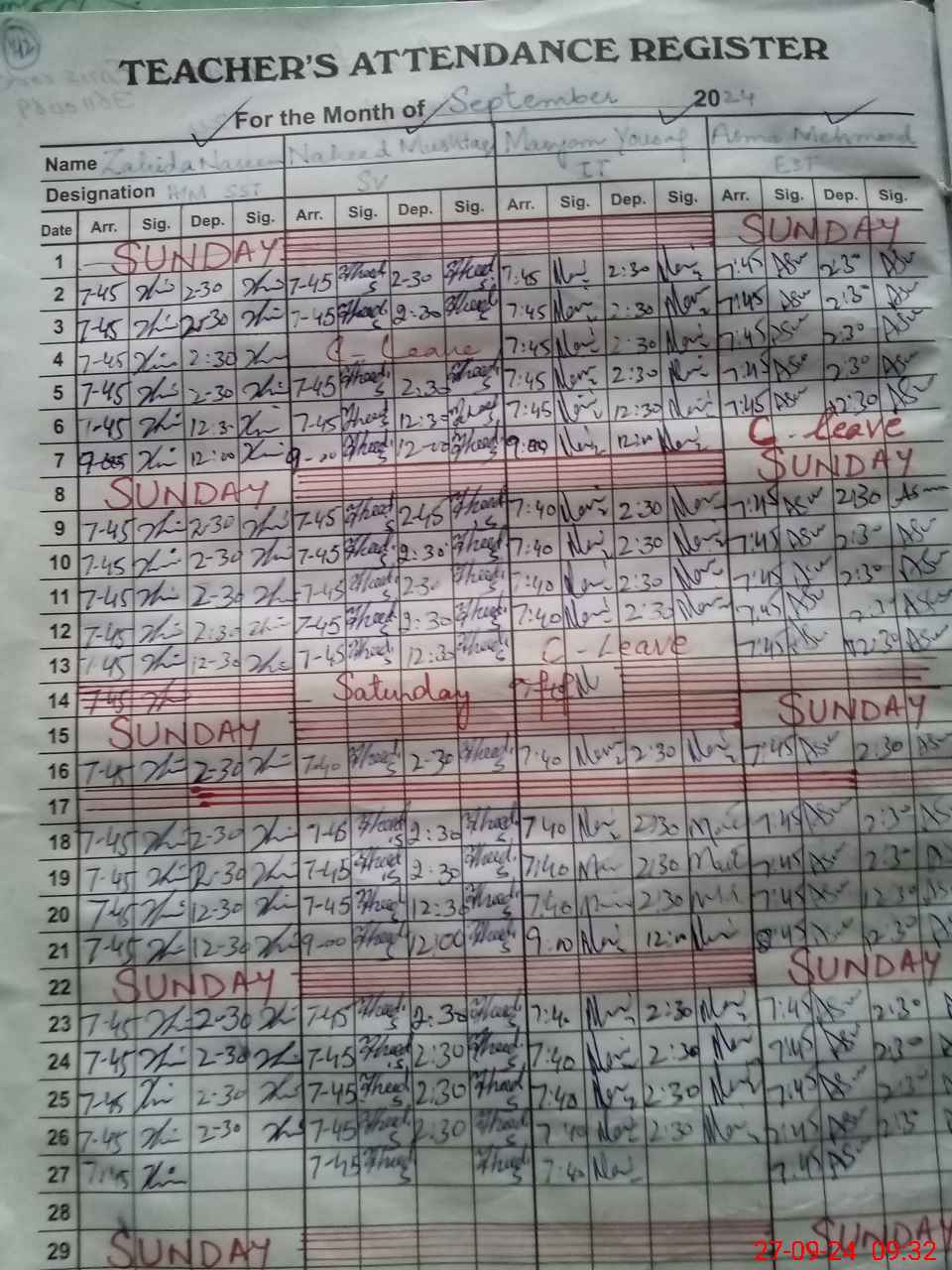 | Name: Sa**** Ir**** Designation: (School Headmaster's/Headmistress's) Headmistress Phone/Cell Number: 03**** |