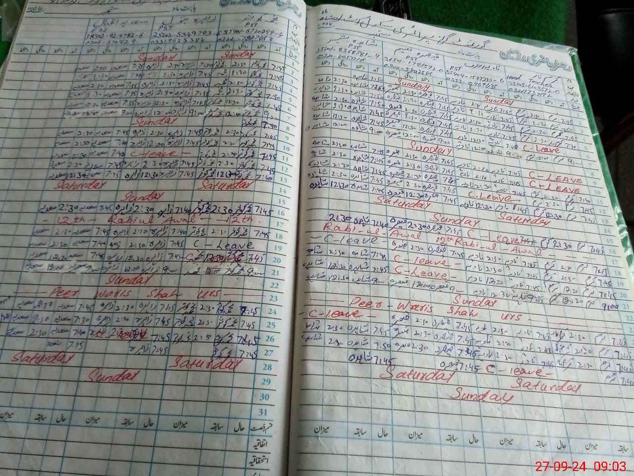 | Leave | Duty | Absent | Maternity | Medical | Ex- Pak |