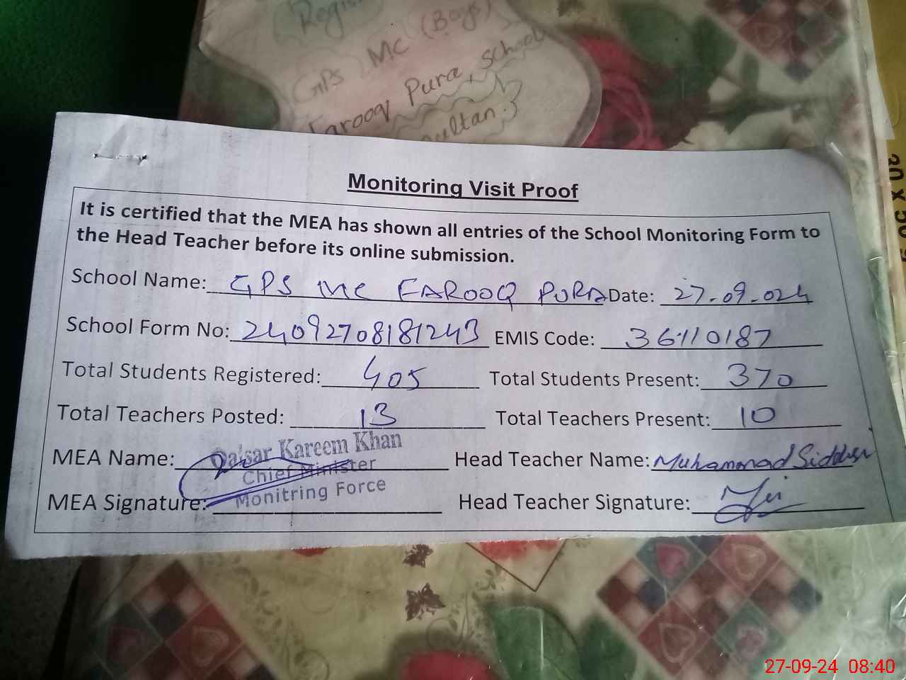 | EMIS Code: 36110187 | Name of School: GPS MC FAROOQ PURA MULTAN | |||
