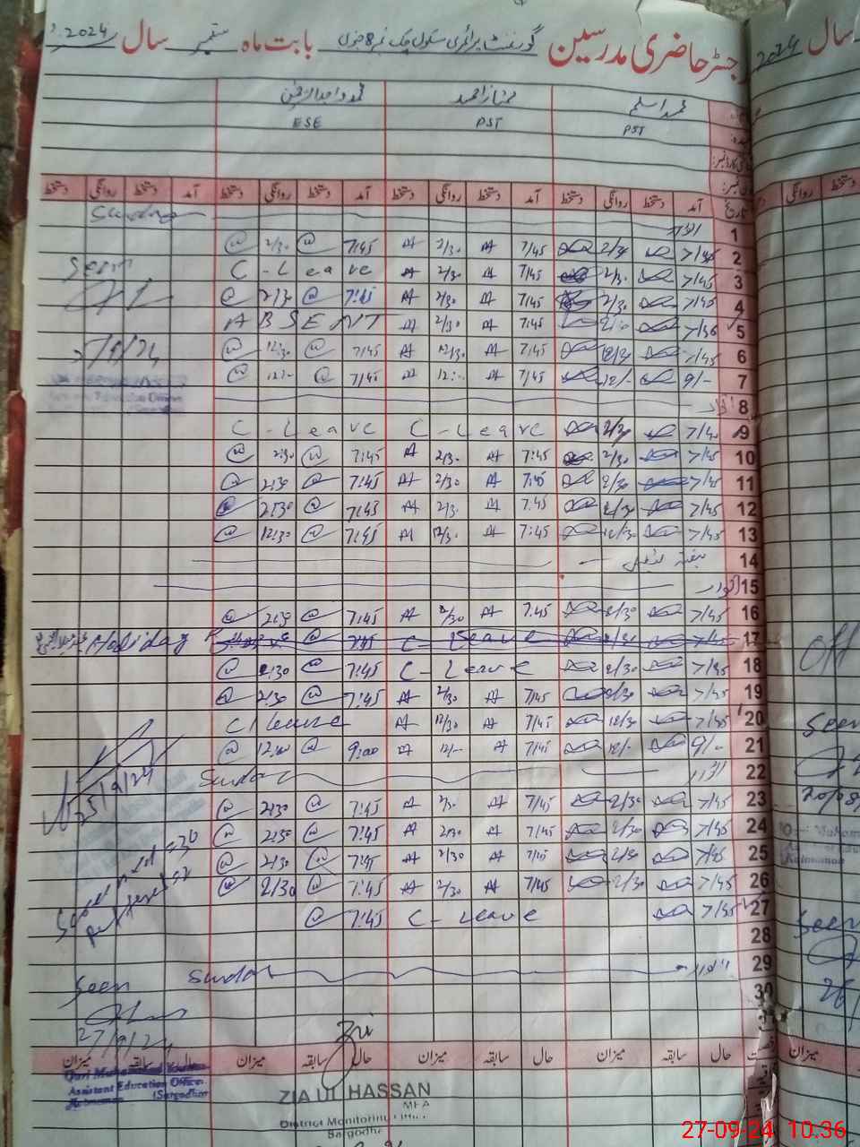 | CNIC | Full Name | Designation | R/C | Absence During Last Calender Month |