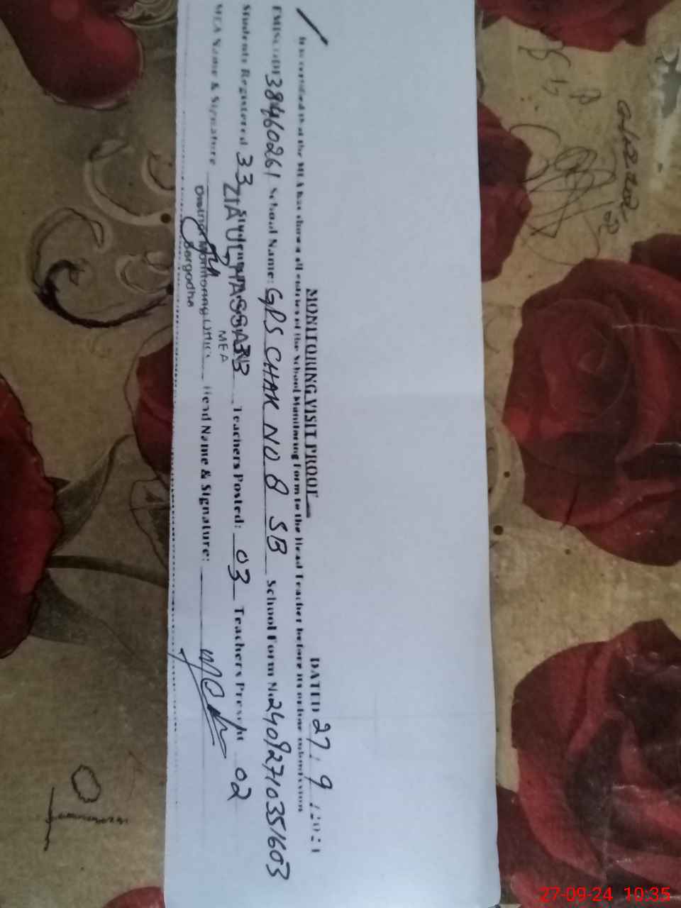 | Attendance Register | Head Teacher | MEA with School | Visit Proof |