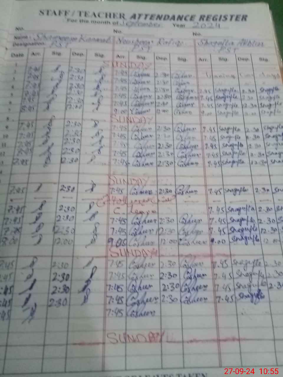 | CNIC | Full Name | Designation | R/C | Absence During Last Calender Month |
