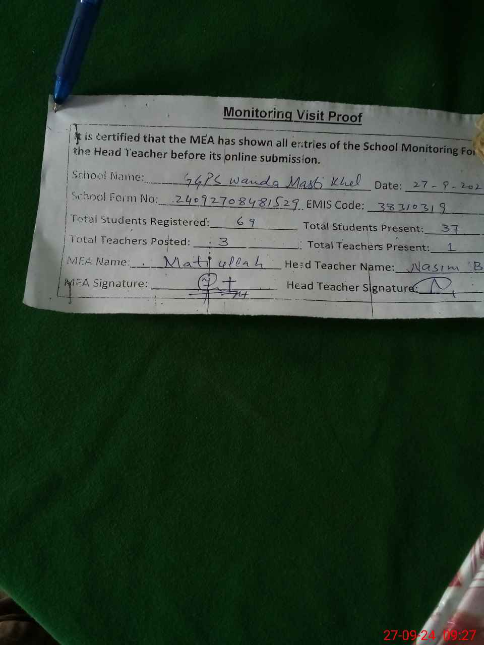| EMIS Code: 38310319 | Name of School: GGPS WANDHA MASTI KHEL | |||