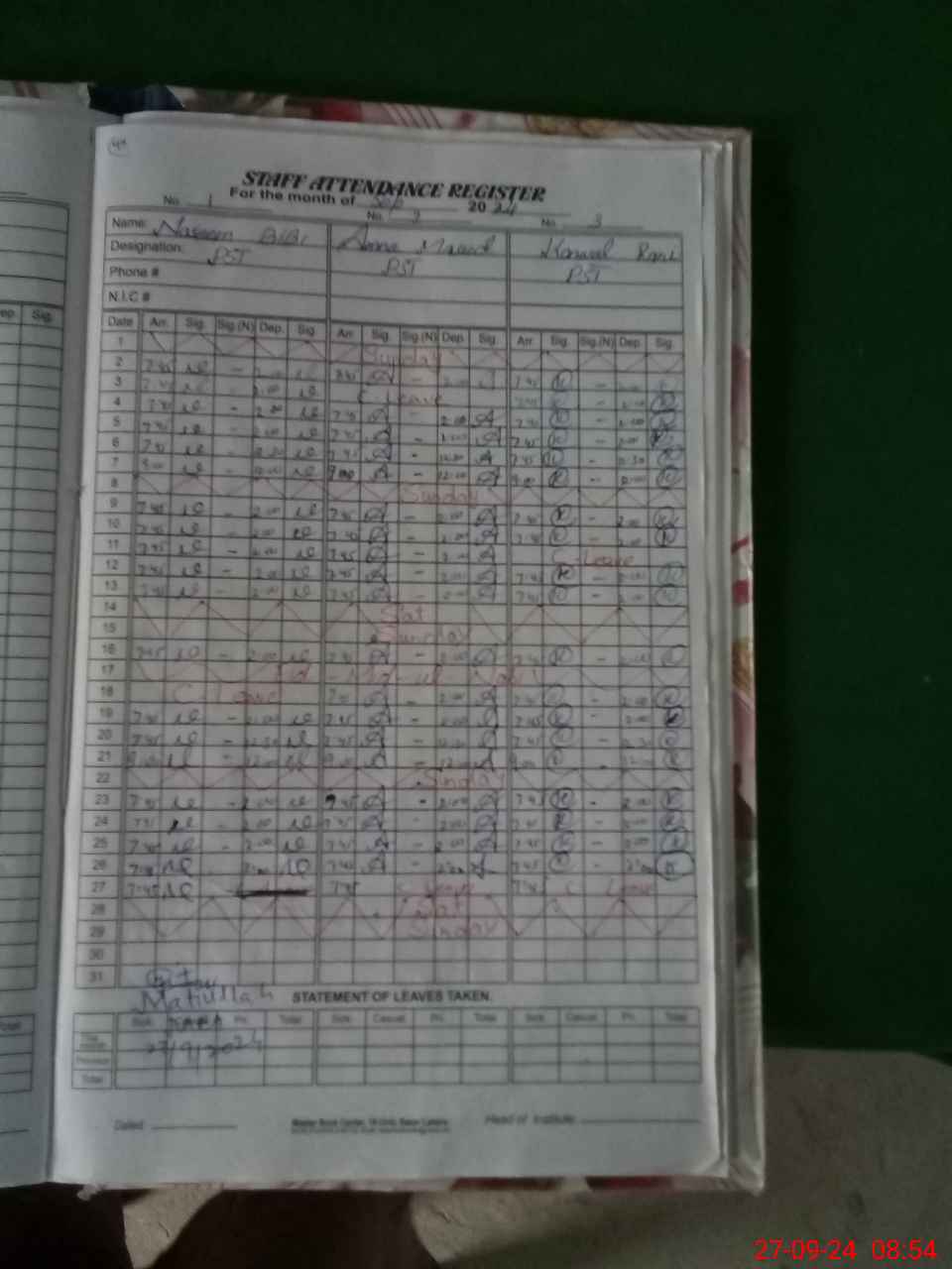 | 38**** | Ka**** Ra**** | 1 | 1 | 0 | 0 | 0 | 0 | 0 | 0 | 0 | 0 | 0 | Absent (Un-Authorized) |