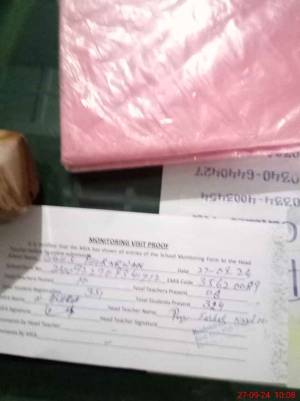 | Attendance Register | Head Teacher | MEA with School | Visit Proof |