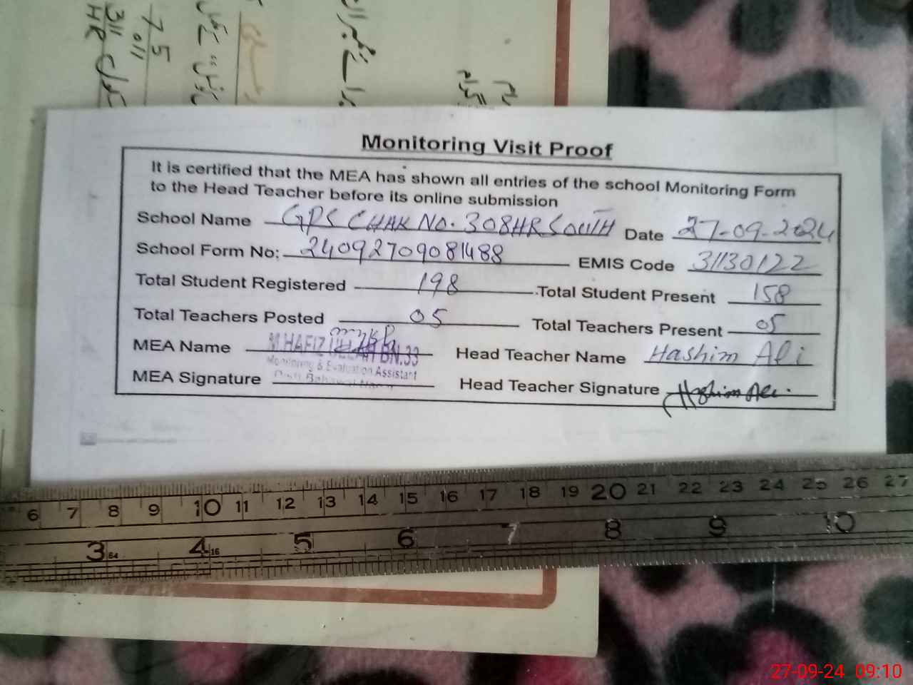 | EMIS Code: 31130122 | Name of School: GPS CHAK 308/HR SOUTH | |||