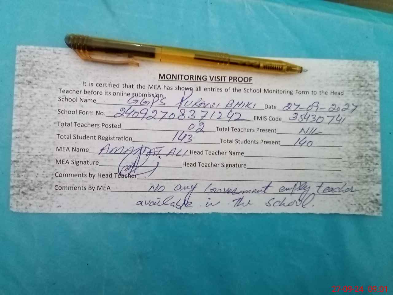 | EMIS Code: 35430741 | Name of School: GGPS PURANI BHIKI | |||