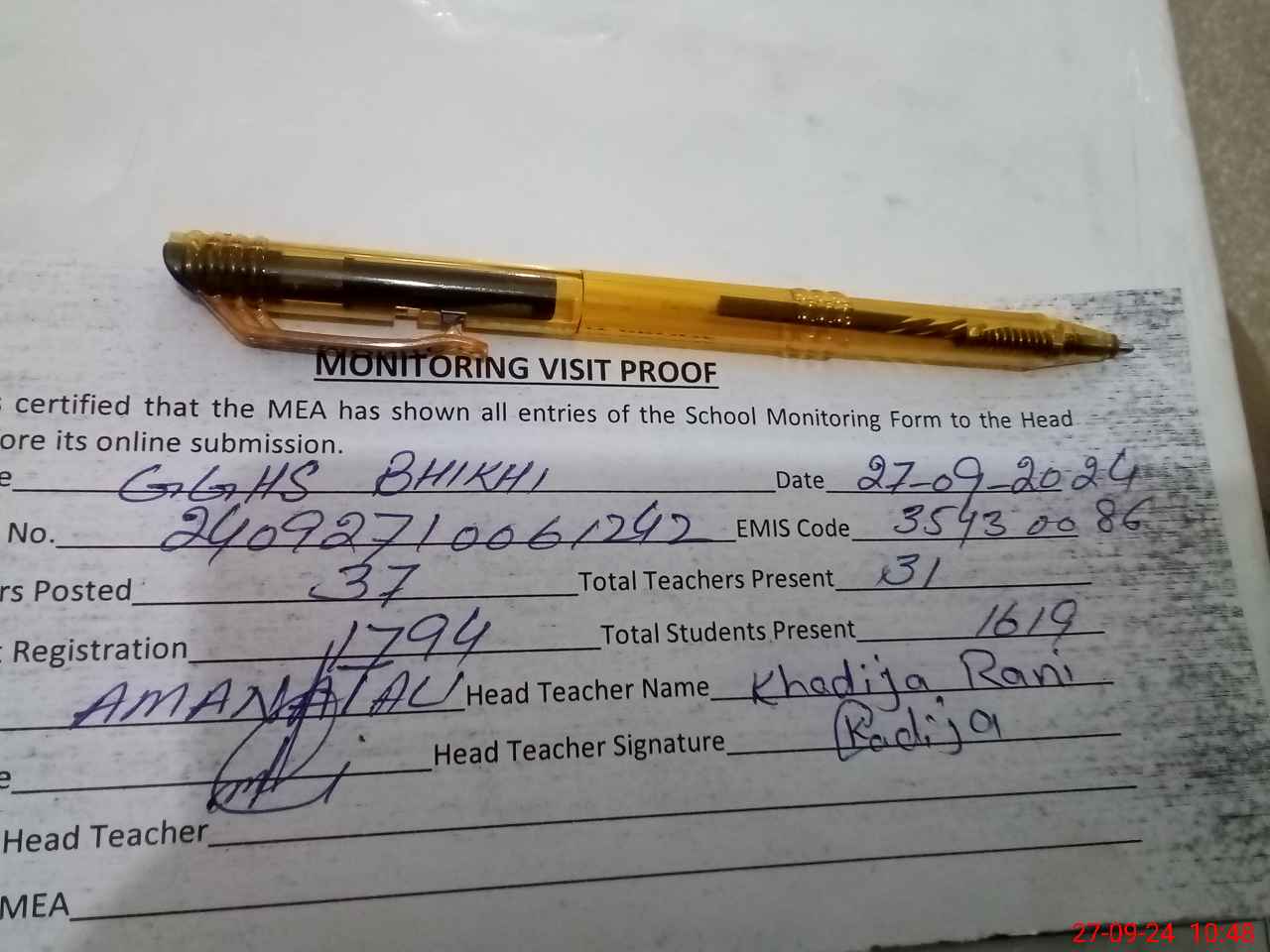 | EMIS Code: 35430086 | Name of School: GGHS BHIKHI | |||