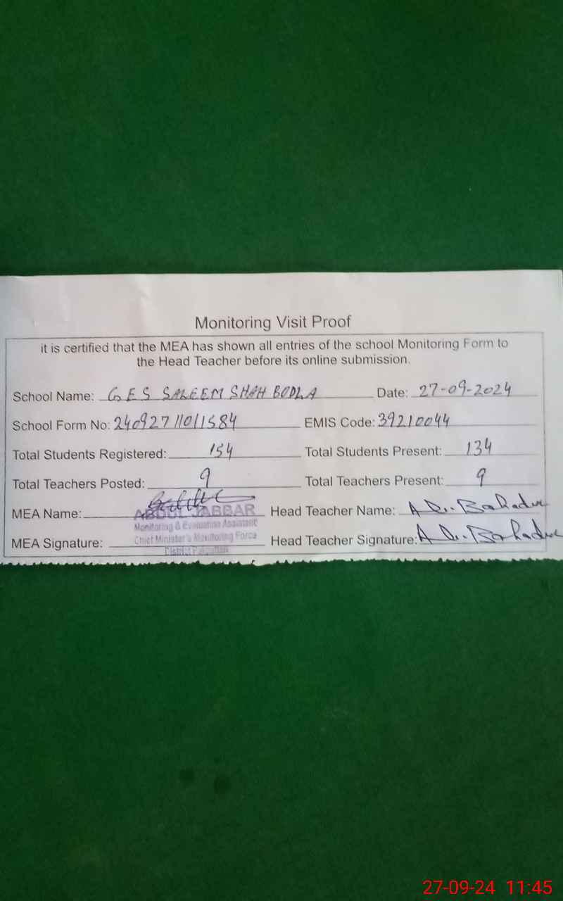 | EMIS Code: 39210044 | Name of School: GES SALEEM SHAH BODLA | |||