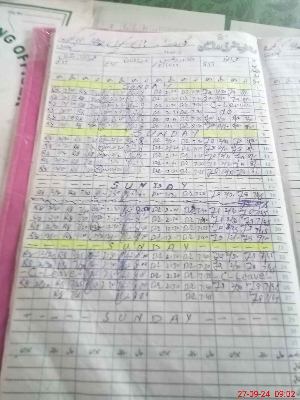 | CNIC | Full Name | Designation | R/C | Absence During Last Calender Month |