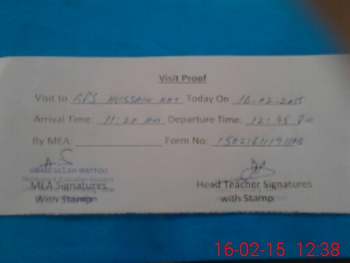 | EMIS Code: 39210274 | Name of School: GPS HUSSAIN KOT | |||