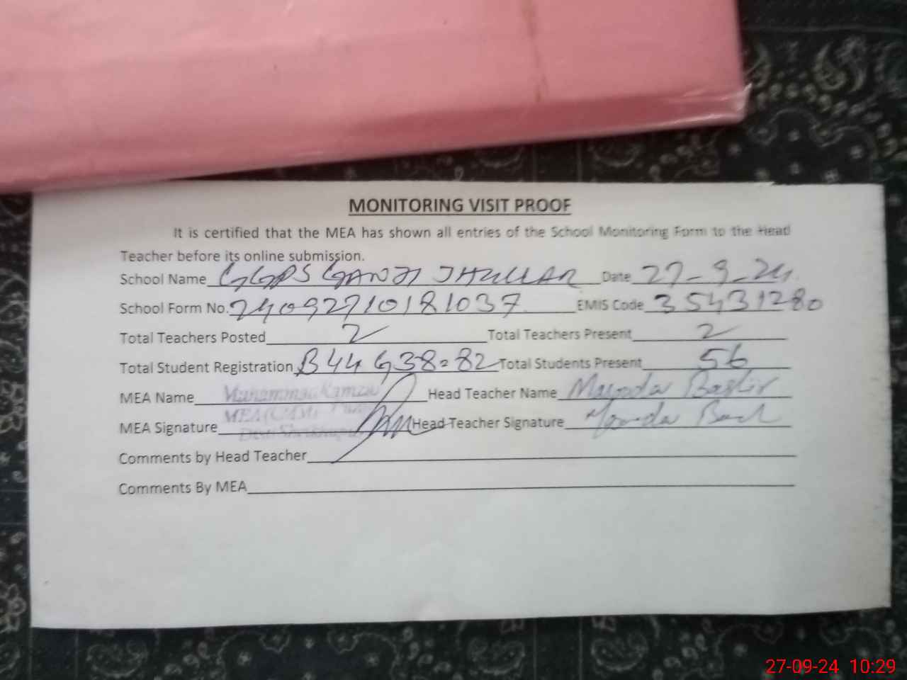 | EMIS Code: 35431280 | Name of School: GGPS GANJI JHULAAR | |||