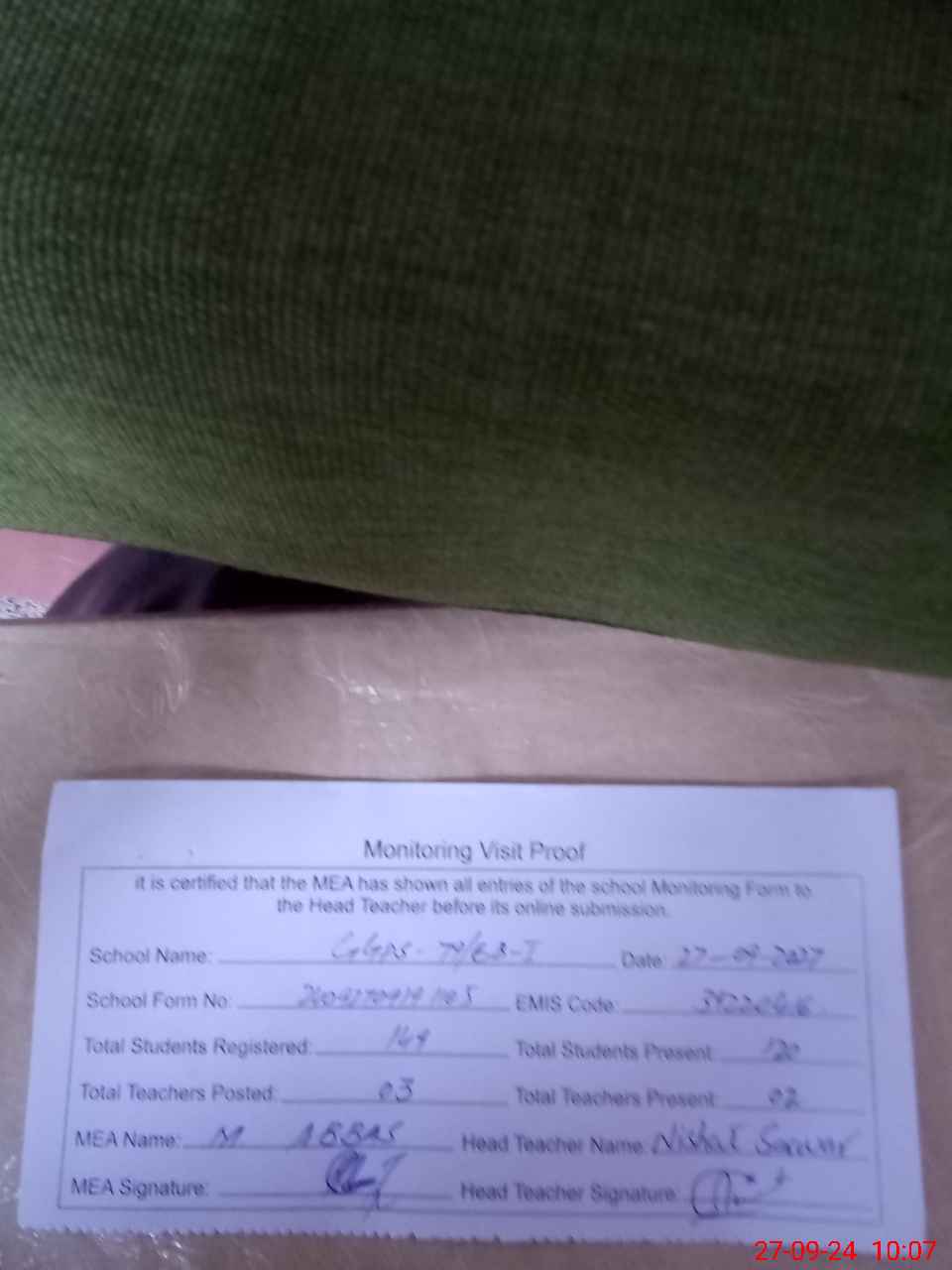 | Certified that this School was Inspected by the Undersigned MEA/DMO Today and the Information Stated Above is as Per Record. | |||||