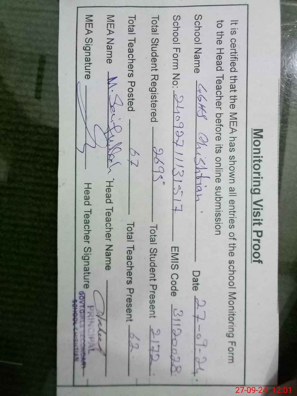 | EMIS Code: 31120028 | Name of School: GGHS CHISHTIAN | |||