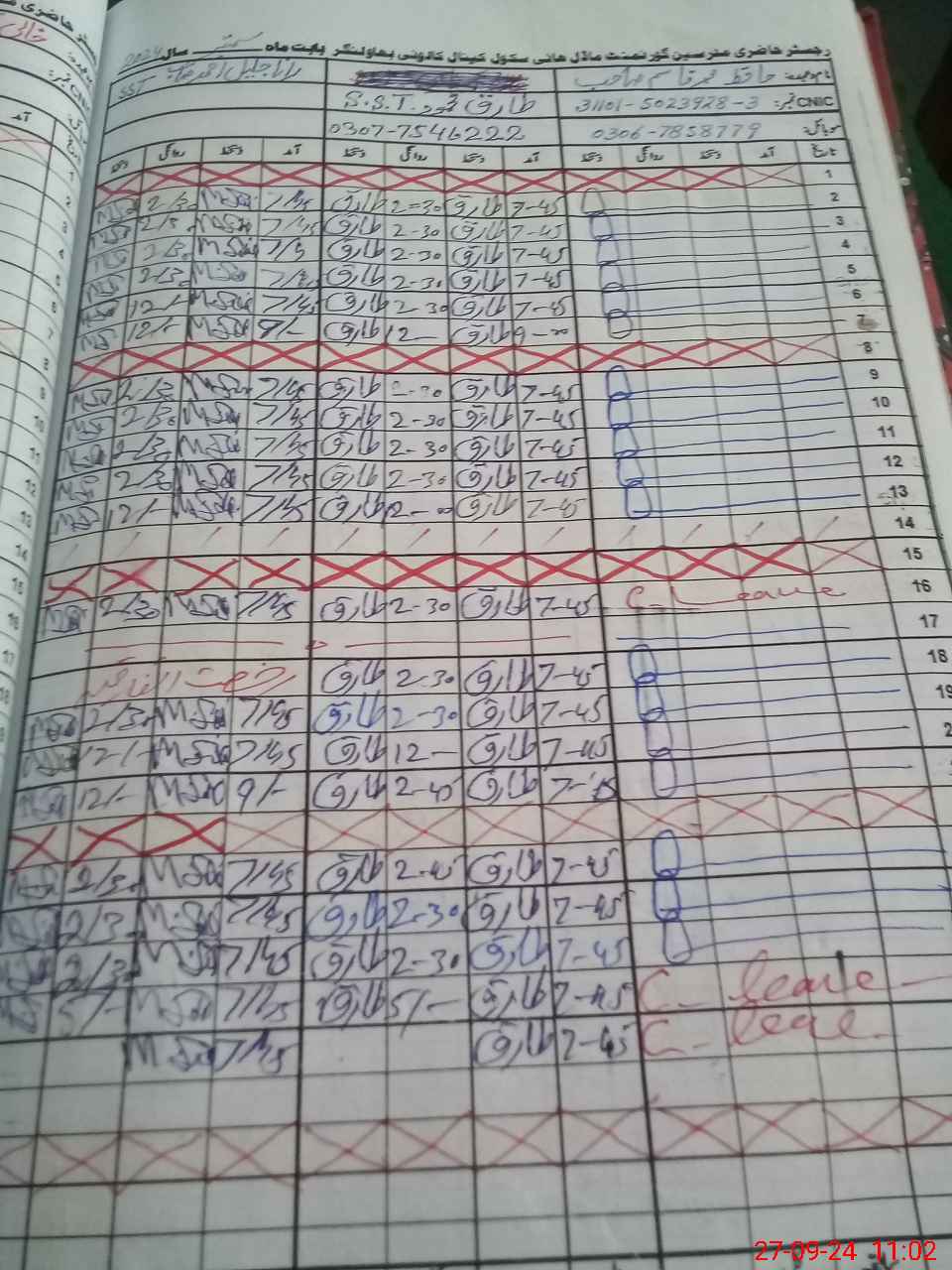 | CNIC | Full Name | Designation | R/C | Absence during last cal. month |