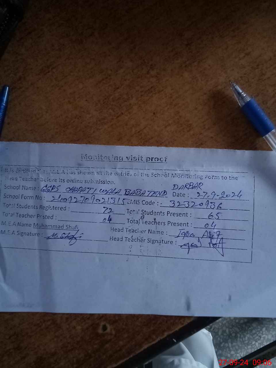 | EMIS Code: 32320936 | Name of School: GGPS CHAPATI WALA (BABA TEND DARBAR) | |||