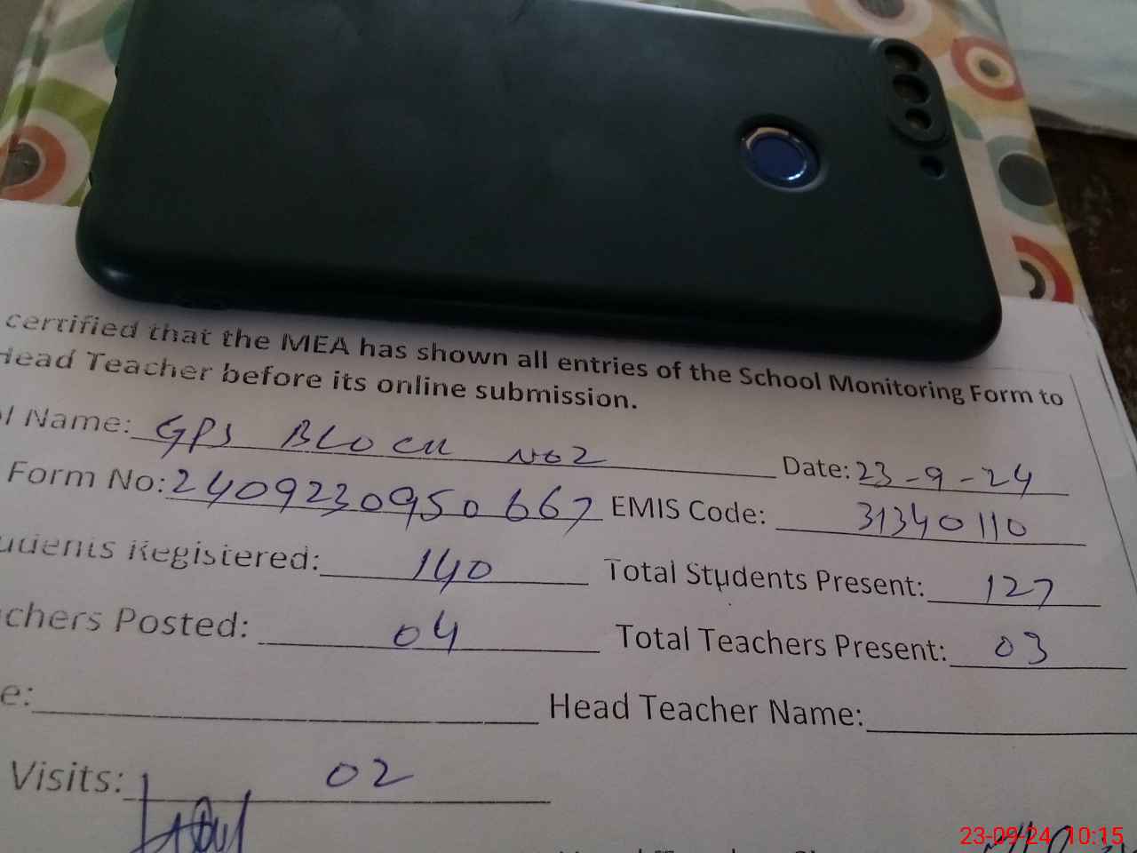 | Attendance Register | Head Teacher | MEA with School | Visit Proof |