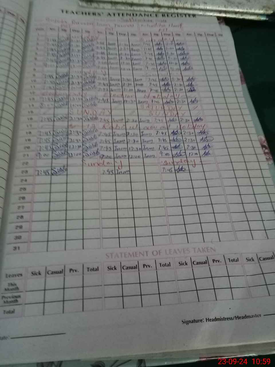 | Leave | Duty | Absent | Maternity | Medical | Ex- Pak |