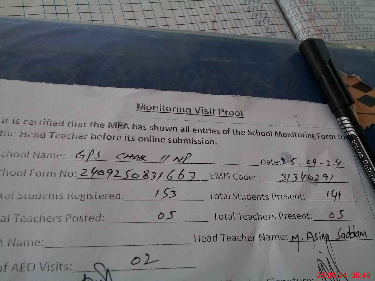 | Attendance Register | Head Teacher | MEA with School | Visit Proof |