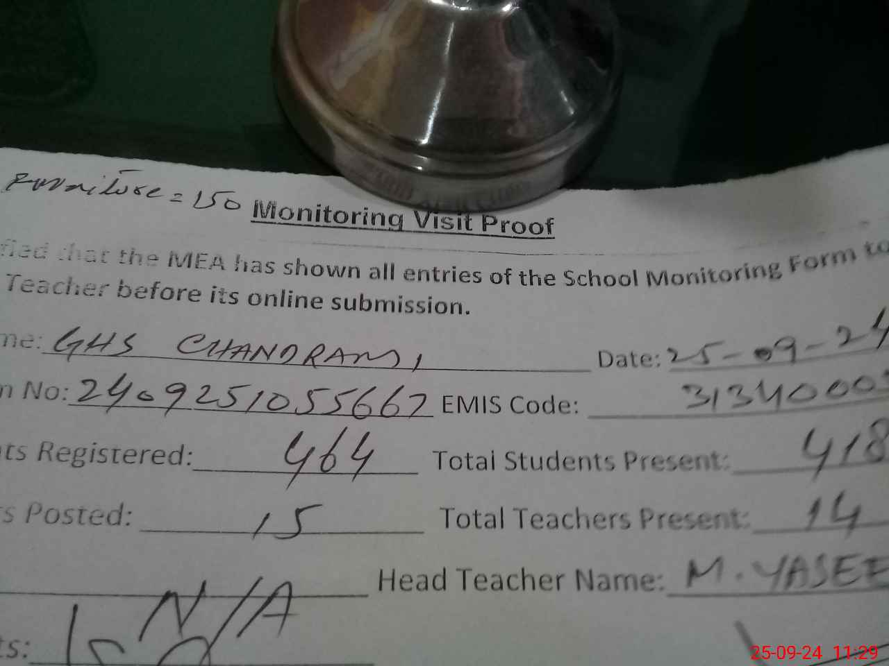 | Monitoring Date: 25-09-2024 | Start Time: 25-09-2024 10:55 AM | End Time: 25-09-2024 11:30 AM | Name of MEA: Sh**** | |