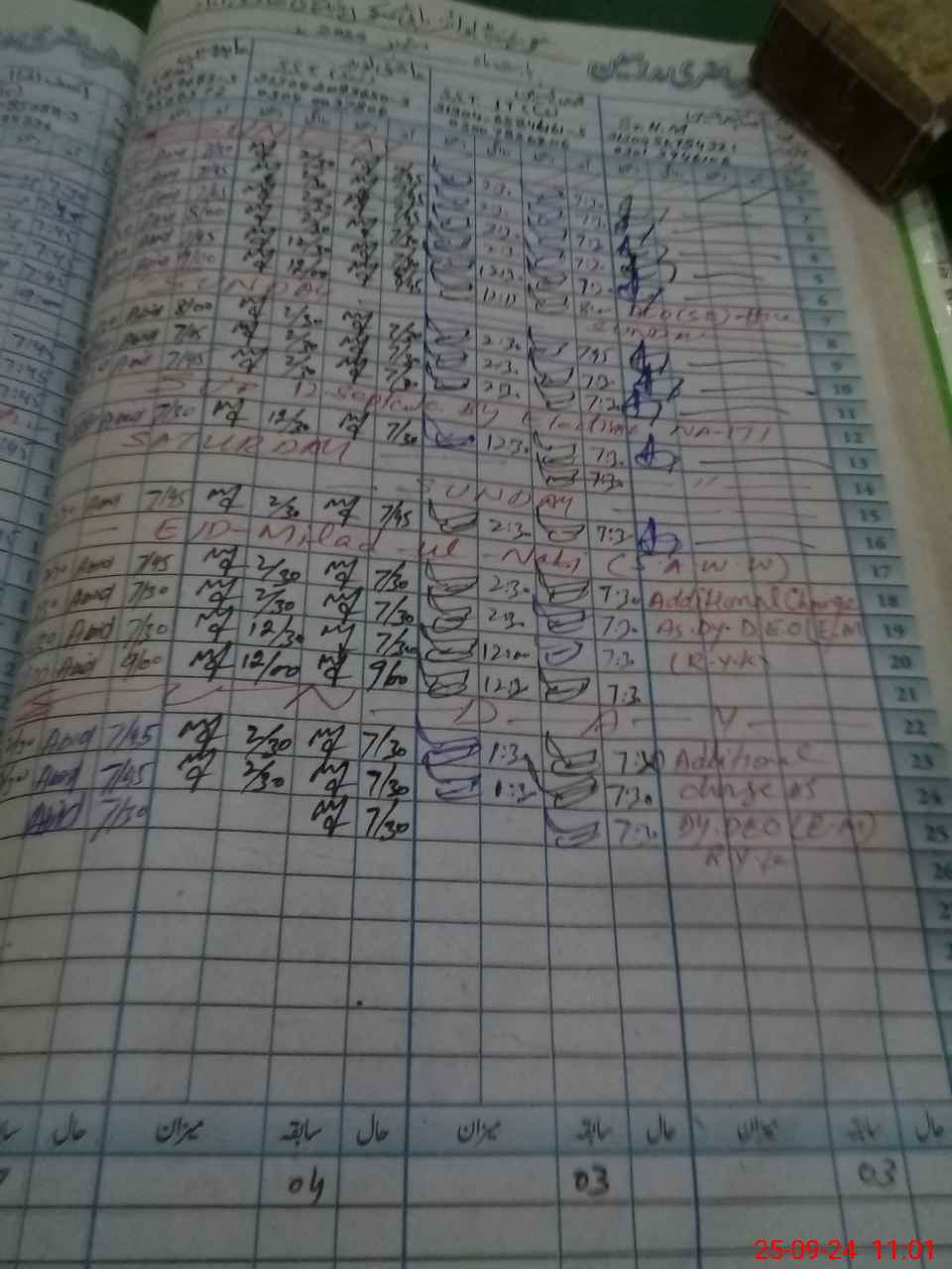 | No. of Students Present - Male | 38 | 0 | 78 | 33 | 33 | 25 | 43 | 30 | 30 | 25 | 28 | 45 | 10 | 418 | ||
