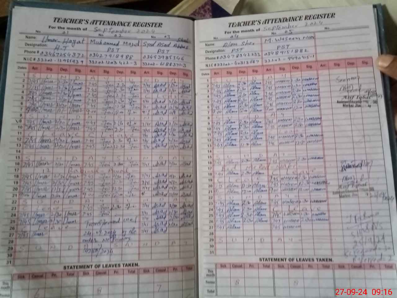 | Name: Um**** Ha**** Designation: (School Headmaster's/Headmistress's) PST Phone/Cell Number: 03**** |