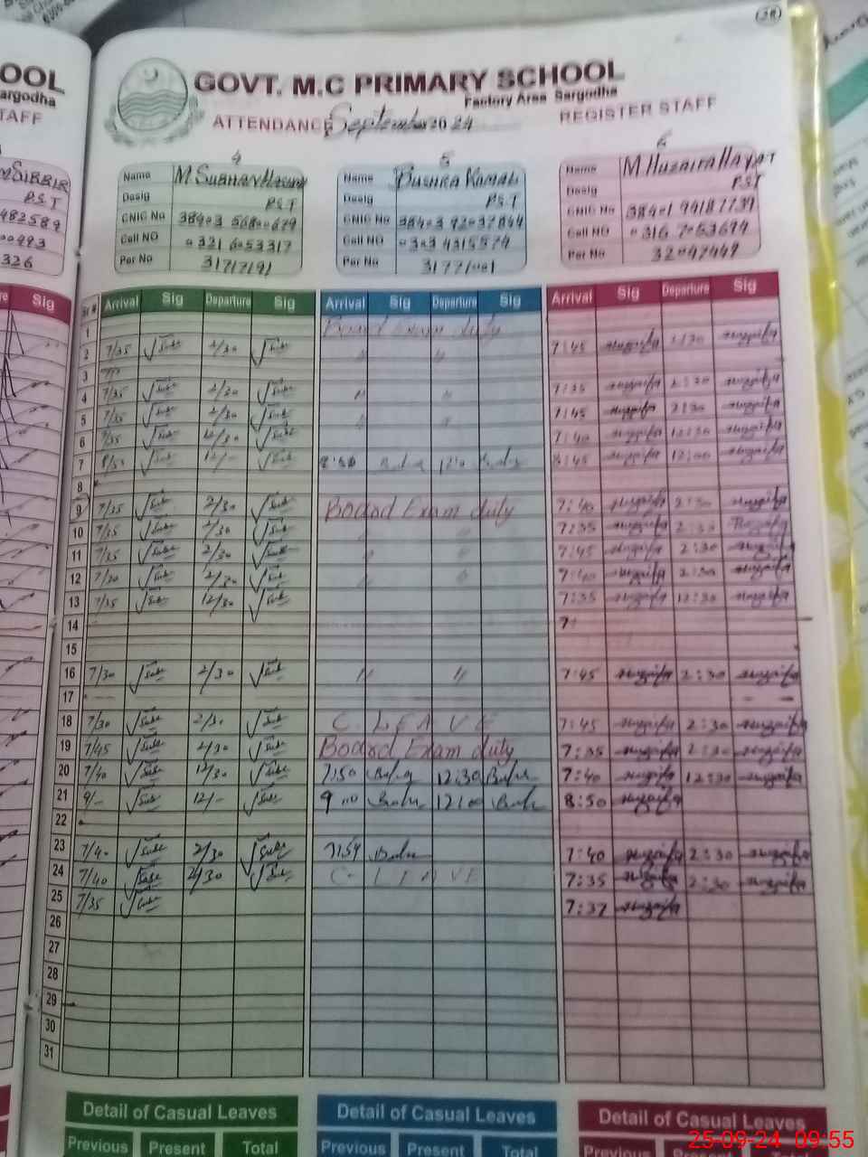 | CNIC | Full Name | Designation | R/C | Absence during last cal. month |