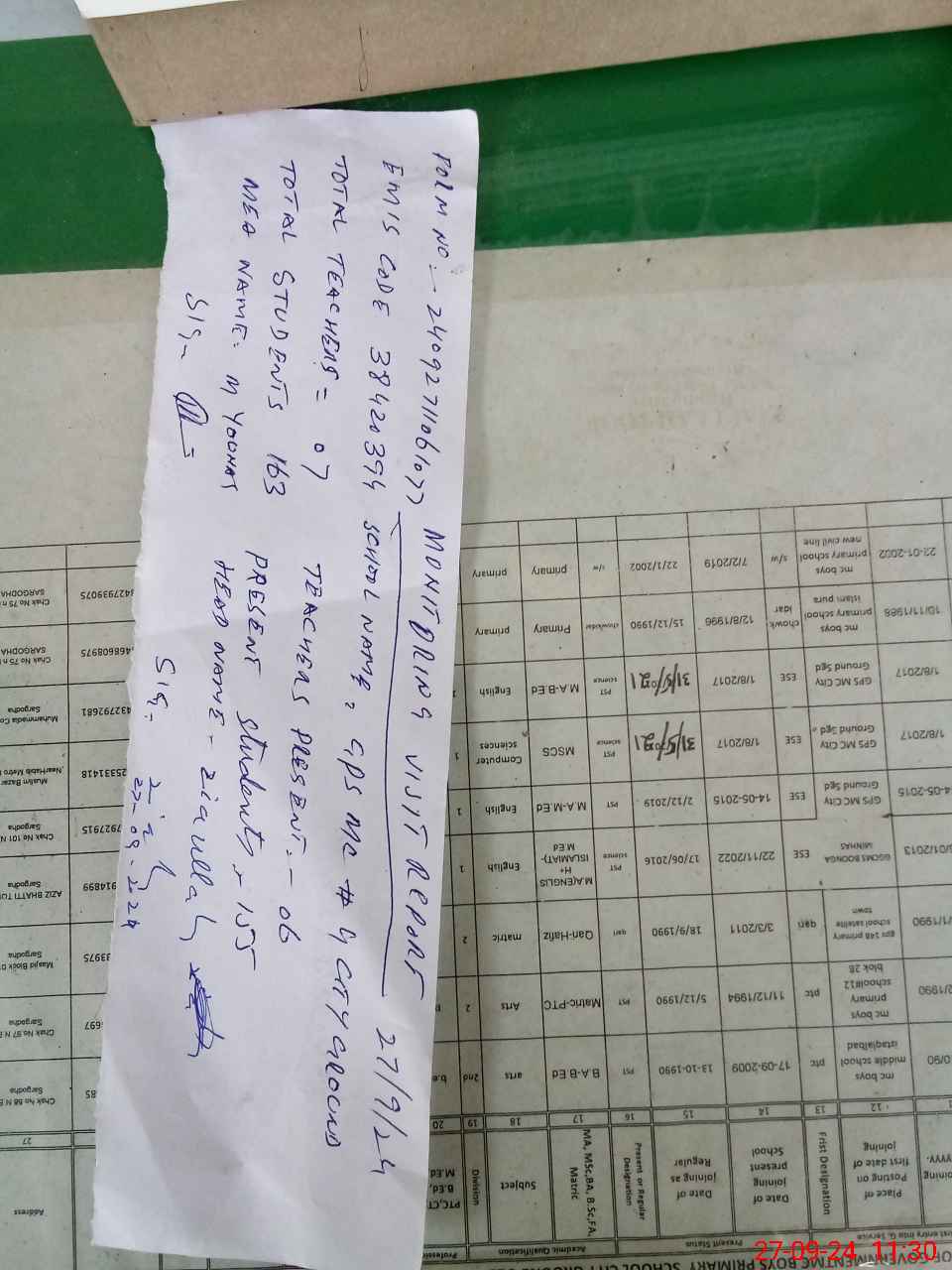 | EMIS Code: 38420394 | Name of School: GPS MC CITY GROUND SARGODHA | |||