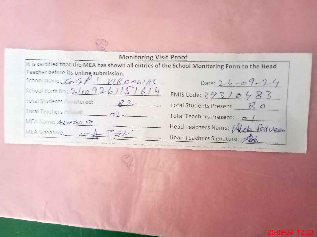 | EMIS Code: 39310483 | Name of School: GGPS VIROOWAL | |||