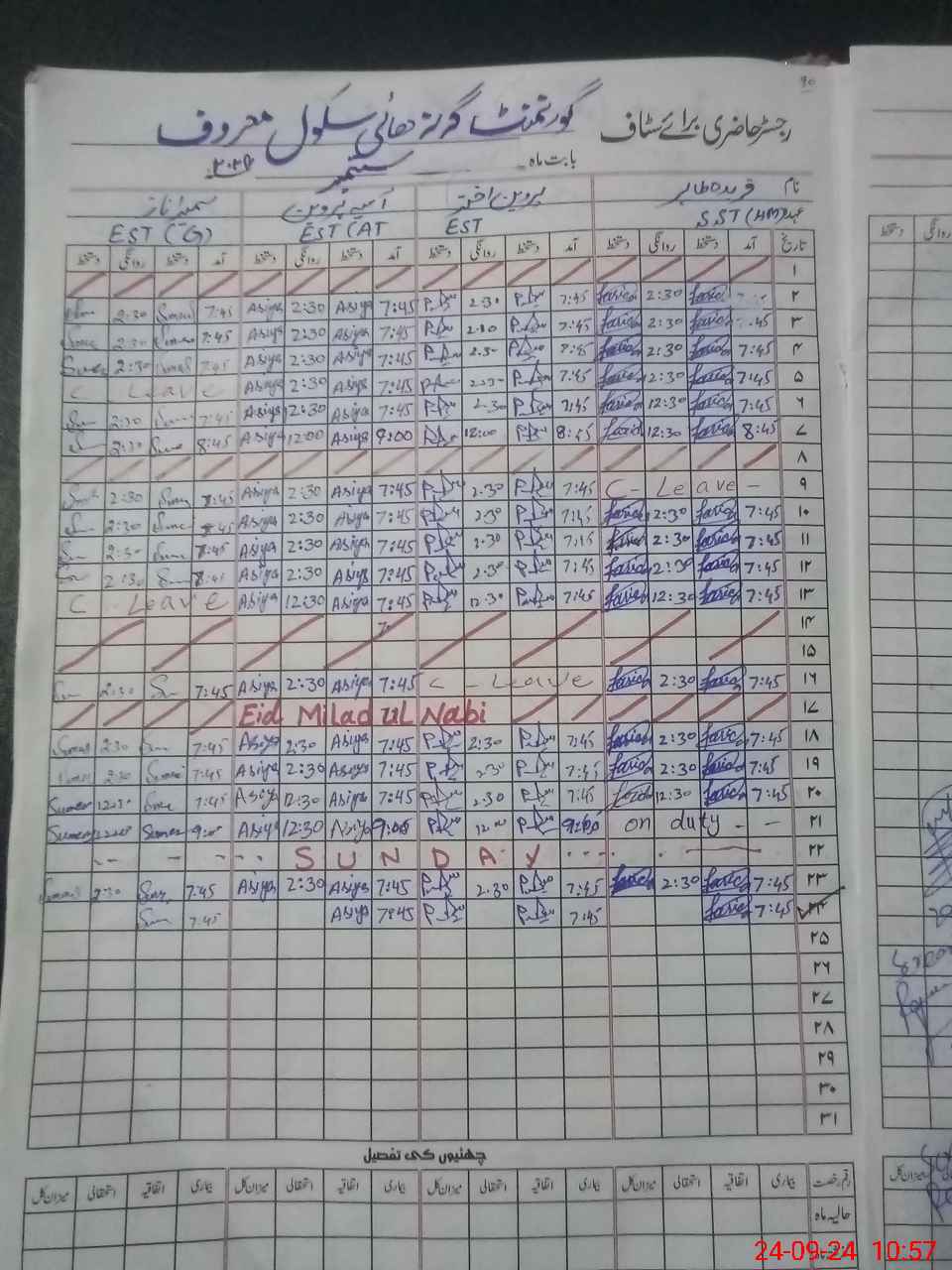 | Leave | Duty | Absent | Maternity | Medical | Ex- Pak |