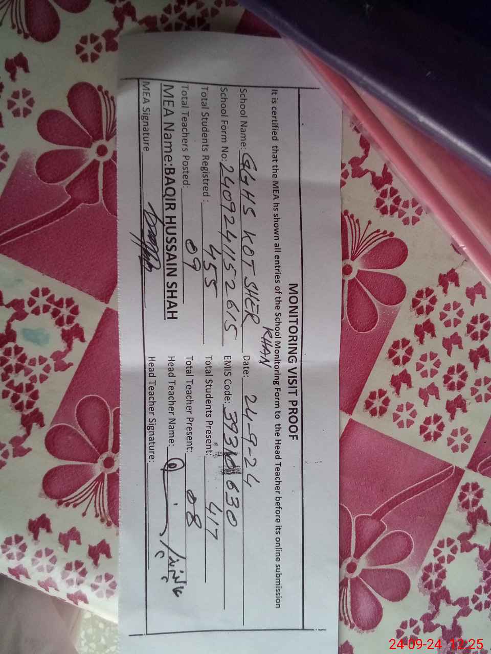 | EMIS Code: 39310630 | Name of School: GGHS KOT SHER KHAN | |||