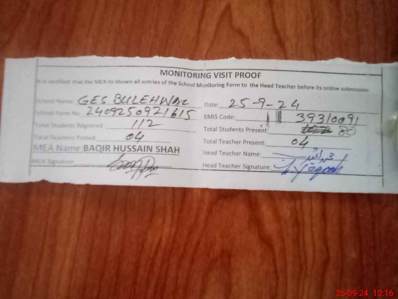 | EMIS Code: 39310091 | Name of School: GES BULEHWAL | |||