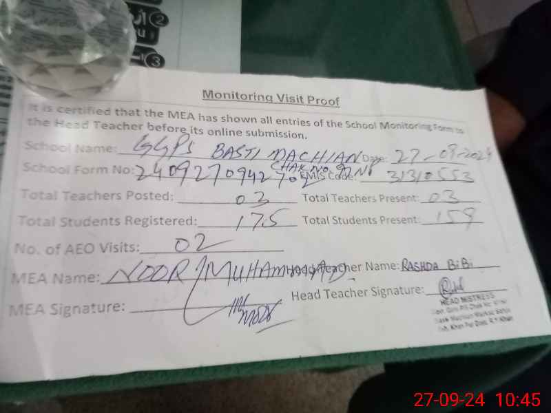 | EMIS Code: 31310553 | Name of School: GGPS BASTI MACHIAN 97/NP | |||